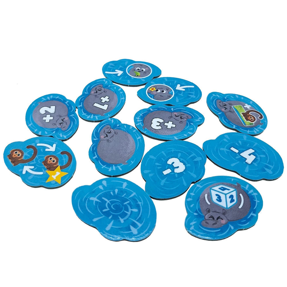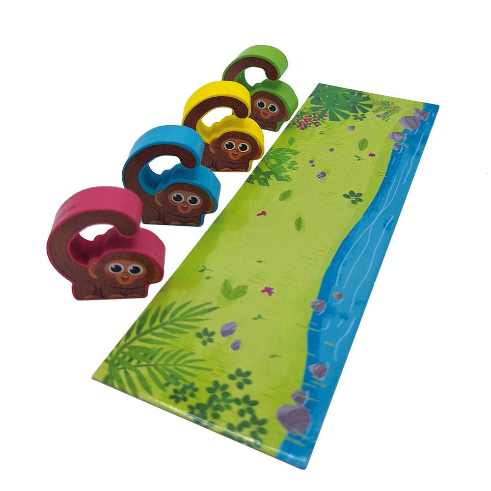 Auzou. Die kleinen Äffchen haben einen Heidenspass daran, von Nilpferd zu Nilpferd zu springen. Welche Affenbande dabei am schnellsten den Baum am Anderen Ende des Flusses erreicht, gewinnt! Doch Achtung! Manche Nilpferde sehen die Affen schon kommen und tauchen vorher unter. Dann macht es „platsch!“ und das nasse Äffchen muss zurück und sich abtrocknen.
