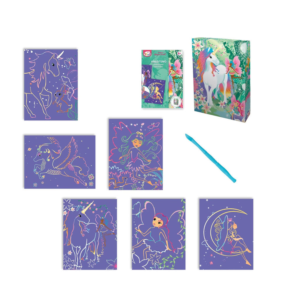 Great scratch pictures that are easy to make yourself. In an attractive storage box. Contents: 6 scratch pictures, 1 scratch pen, 1 instruction manual with illustrations.