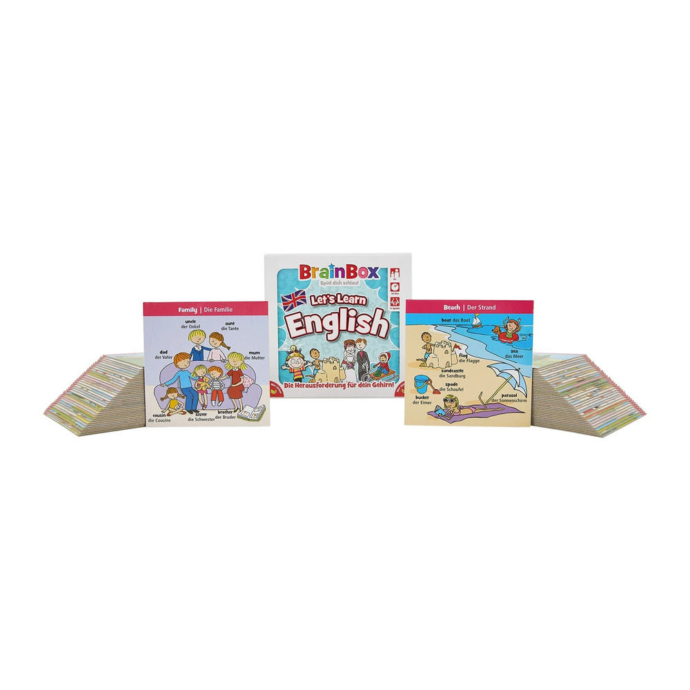This original BrainBox encourages children's observation and memory skills in a playful way. Whether alone, as a couple, with family or with friends - BrainBox is simply fun! Each card shows a scene with different terms in German and English. On the back of each card there are four questions for English beginners and for advanced learners. This is a great way to learn English while having fun!