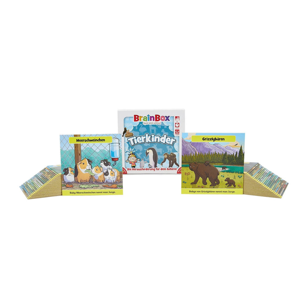 Each card shows pictures of chicks, caterpillars, puppies, calves, foals and kids. On the back of each card there are six questions about the topic on the front. The BrainBox encourages children's observation and memory skills in a playful way.