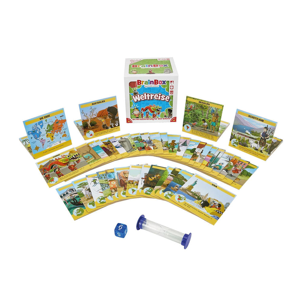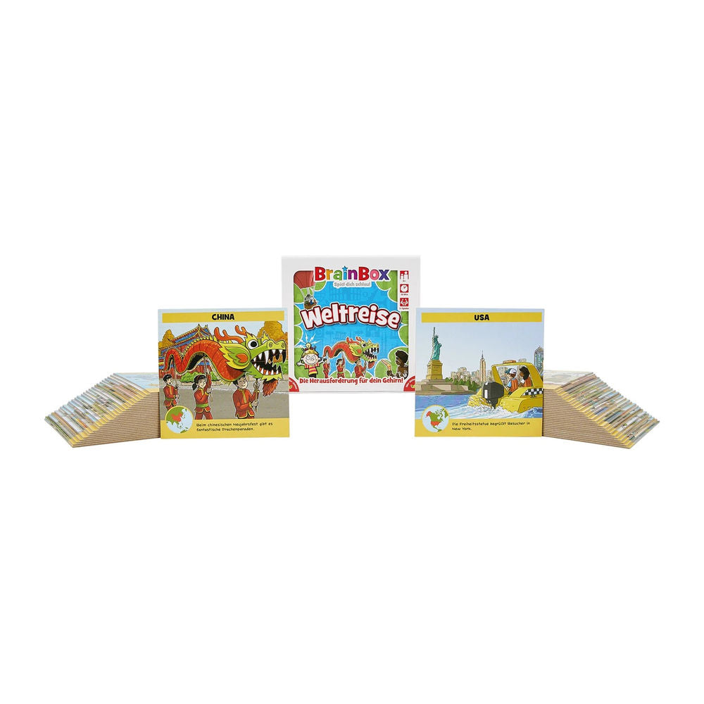 Each card shows pictures from the Australian outback to the Amazon rainforest, from the Egyptian pyramids to the pink beaches of Bermuda. On the back of each card there are six questions about the topic on the front. The BrainBox encourages children's observation and memory skills in a playful way.