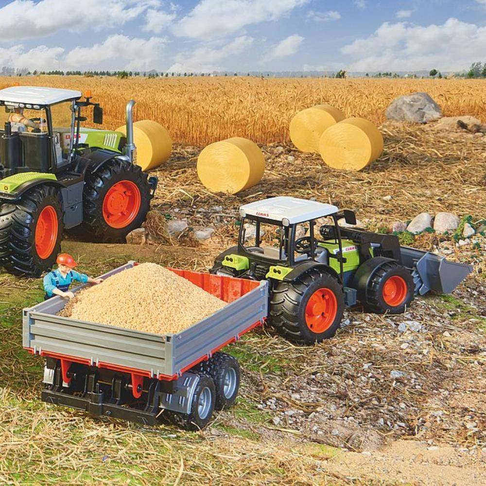 For light transport tasks in construction, agriculture and forestry, small, movable trailers are required that can usually be towed by different vehicles such as small tractors, Unimogs, light trucks, etc. The side wall trailer is therefore ideal for the BRUDER tractors, the MB Unimog and the Mercedes Benz Sprinter. All 3 foldable side walls, the tiltable platform and the fold-out support leg ensure plenty of entertainment and fun.