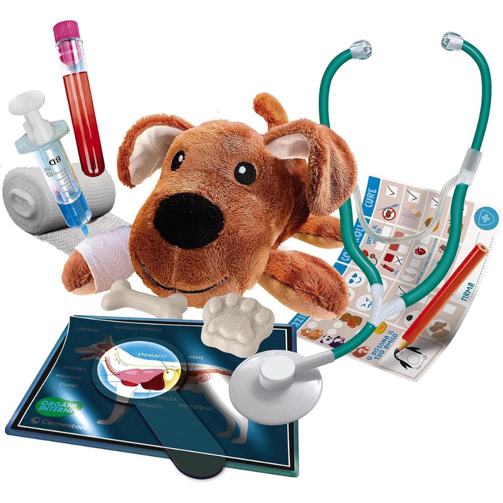 Für alle Kinder, die davon träumen, Tierarzt zu werden, wird dieses tolles Set ihnen helfen, diesen faszinierenden Beruf zu entdecken! Das Spiel enthält ein Stofftier, um das man sich kümmern muss und alles, was man dazu braucht: ein Stethoskop, Verbandszeug, Mullbinden und ein spezielles Halsband. Dabei können die Jüngsten in die Rolle eines echten Arztes schlüpfen und mit einem einfühlsamen und unterhaltsamen Spielerlebnis viel über Tiere lernen. Das Begleitheft leitet das Kind beim Spielen an und liefert viele nützliche Informationen über die Merkmale der Tiere und den Beruf des Tierarztes. Ein Video-Tutorial mit einem witzigen Tierarzt, der die Kinder durch alle vorgeschlagenen Aktivitäten führt, sorgt für zusätzlichen Spass.