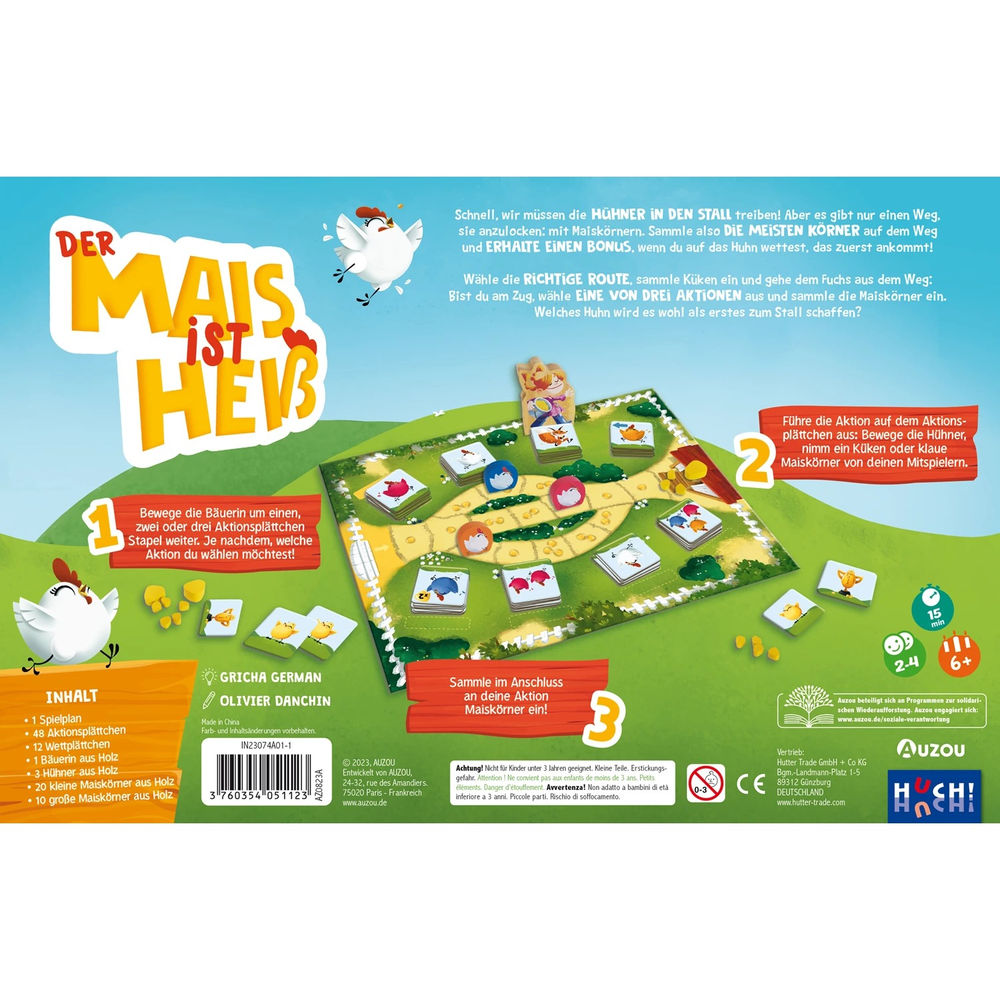 Auzou. Schnell, wir müssen die Hühner in den Stall treiben! Aber es gibt nur einen Weg, sie anzulocken: mit Maiskörnern. Sammle also die meisten Körner auf dem Weg und erhalte einen Bonus, wenn du auf das Huhn wettest, das zuerst ankommt! Wähle die richtige Route, sammle Küken ein und gehe dem Fuchs aus dem Weg: Bist du am Zug, wähle eine von drei Aktionen aus und sammle die Maiskörner ein. Welches Huhn wird es wohl als erstes zum Stall schaffen?