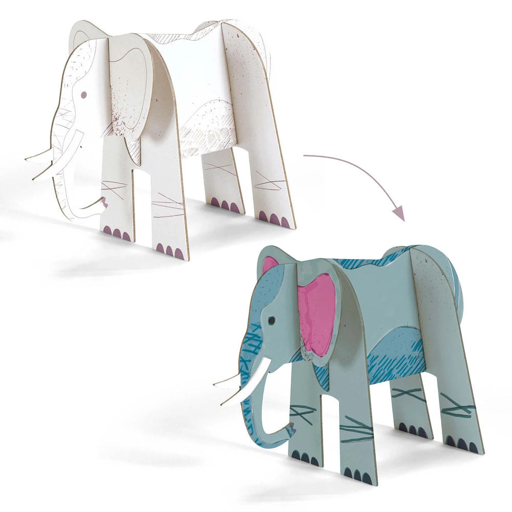 A creative set with a variety of cardboard pieces to color and assemble to make animals and savannah landscapes. The child plays with all the pieces they have made and then they can start creating exciting stories!
