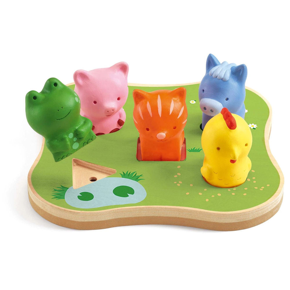Caconimo is a sound puzzle with 5 farm animals and a wooden board. The child discovers the different animal sounds.SKU:5401710