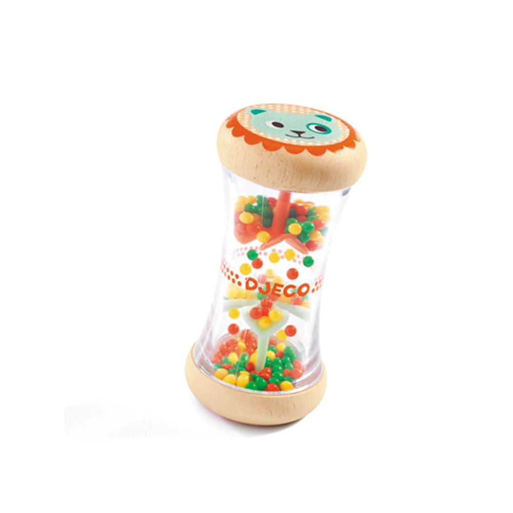 The PITIPLUI rattle in natural/coloured by Djeco is a lovely toy for little ones. The clattering balls in the transparent plastic casing arouse the child's curiosity and sound like rain. In addition, the rounded wooden shape at the ends can be easily held and shaken by children's hands.