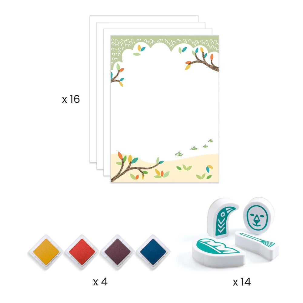 A stamp box with an animal theme, where the child puts together his or her own motifs by combining shapes and different colors. Little by little, the child colors the stamps with the stamp ink and places the stamps on the picture to bring the decorative templates to life. The child can let his or her imagination run wild and combine stamps and colors as he or she likes! The pictures are brought to life in different ways every time!