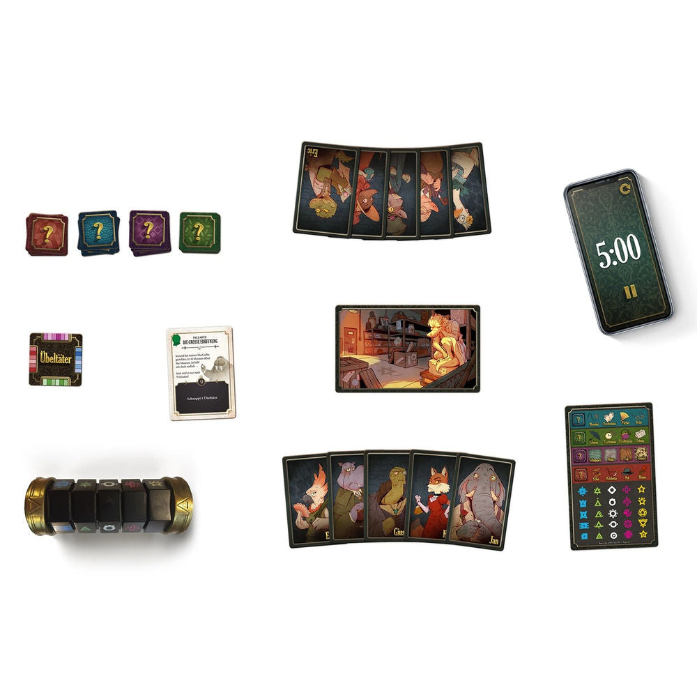 Teamwork is essential in 5 Minute Mystery! Only together can the players solve the theft in the museum under time pressure. The aim is to find the symbols in the various rooms and enter them into the codex, check the collected clues and gradually eliminate the suspects. 5 Minute Mystery has different levels of difficulty due to the many different cases and is therefore perfectly suited to the respective group of players.