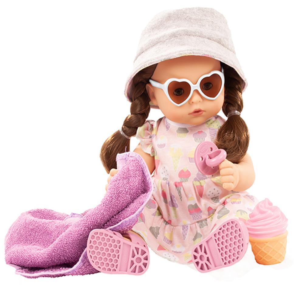 Götz Set Maxy Aquini, bath doll 42cm, with brown hair and pacifier. This doll provides bathing and playing fun and is waterproof, with sleeping eyes.