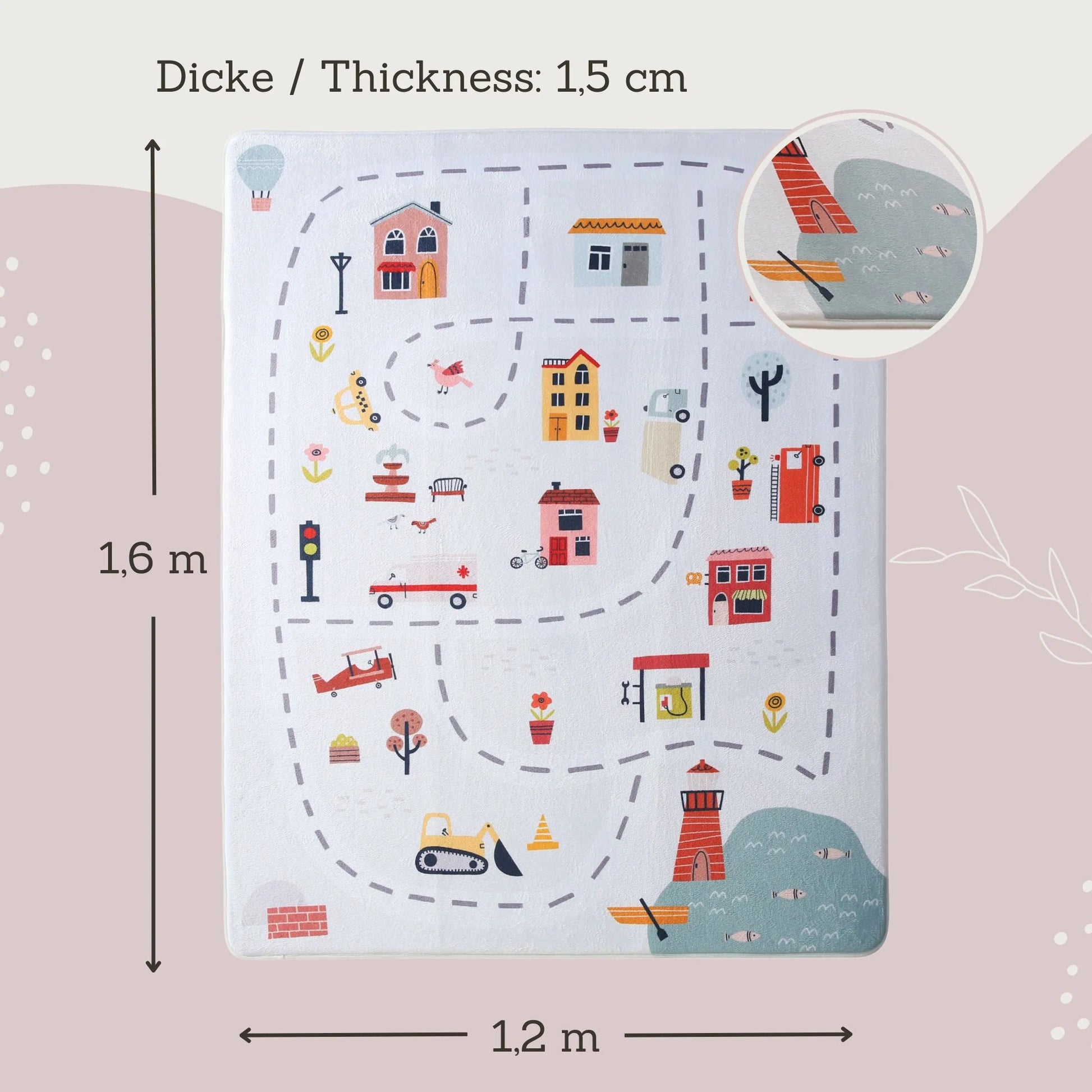- Der wolkenweiche Spielteppich für Kinder besteht aus drei Schichten: 1. Korallensamt für den weichsten Hautkontakt, 2. elastischer Memory-Schaum für bequemes Spielen und Krabbeln, 3. rutschfeste Rückseite zum Schutz vor Stössen beim Fallen. Durch die extra Grösse von 160 x 120 x 1,5 cm ist dieser Baby Teppich perfekt zum Krabbeln, Spielen, und Yoga.