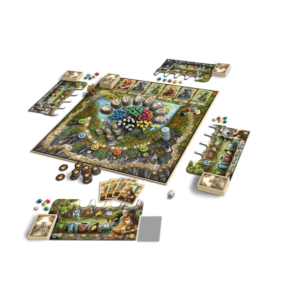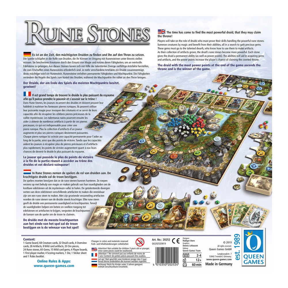 It's time to find the most powerful druid and put him on the throne. Players take on the role of druids who must prove their skills in handling runestones. They summon creatures using magic and use their abilities to obtain valuable gemstones. With the help of the talented dwarves, these stones can be used to create a variety of artifacts that are needed to create a runestone. The more different artifacts a druid collects, the more powerful a runestone becomes. Runestones grant permanent abilities and power points. The abilities change the rules of the game to the druid's advantage, while the power points bring him closer to the throne. The druid who has the most power points at the end of the game wins.