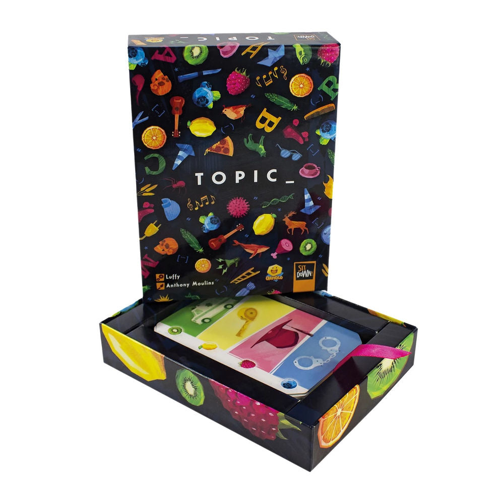 Nothing at first glance. But if you're playing "Topic_", the connection could be quite clear! With "Topic_", there are always two cards in the middle of the table. In our case, one card shows a lemon and the number 2. The other card shows four different categories. The lemon marks a category in color and refers to a specific topic on the other card. In this case, a stethoscope is shown next to the lemon on another card. A stethoscope could stand for "medical term", for example. The lemon card also shows the number 2. Can you think of a two-syllable word related to the topic of "stethoscope"? How about "blood pressure!" or "plaster!" Be quick and call out a suitable word. If you react too slowly, you have to draw an additional card from the pile. Whoever has the fewest cards at the end of the game wins!
