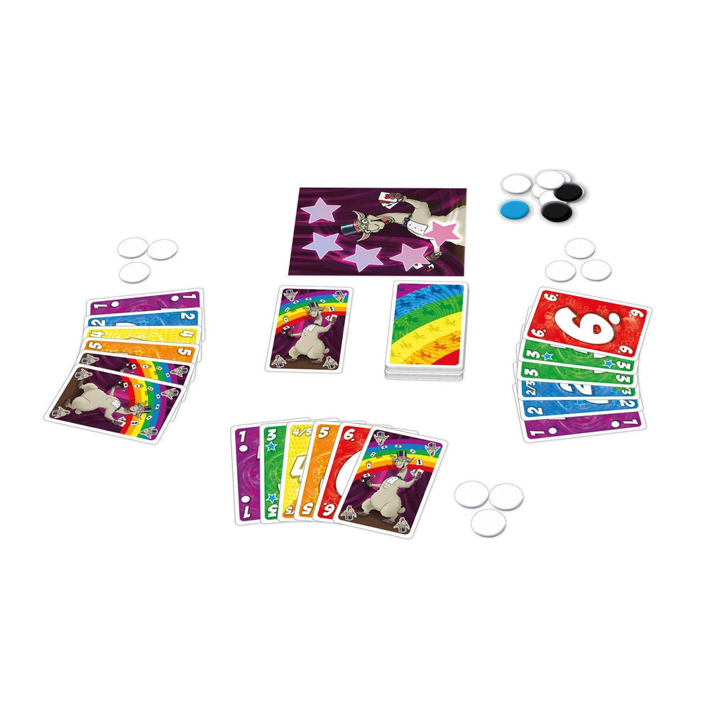 Le Lamagicien sort de son chapeau de nouveaux tours! La règle d’or est d’éviter les points négatifs, mais il y a tant d’occasions de “gagner” des jetons, notamment au cours du Lamagic Show, où vous donnez des jetons chaque fois que vous jouez des lamas. Jouez habilement vos cartes spéciales et échangez le plus souvent possible les jetons faibles contre un jeton plus élevé pour mieux vous en débarrasser.