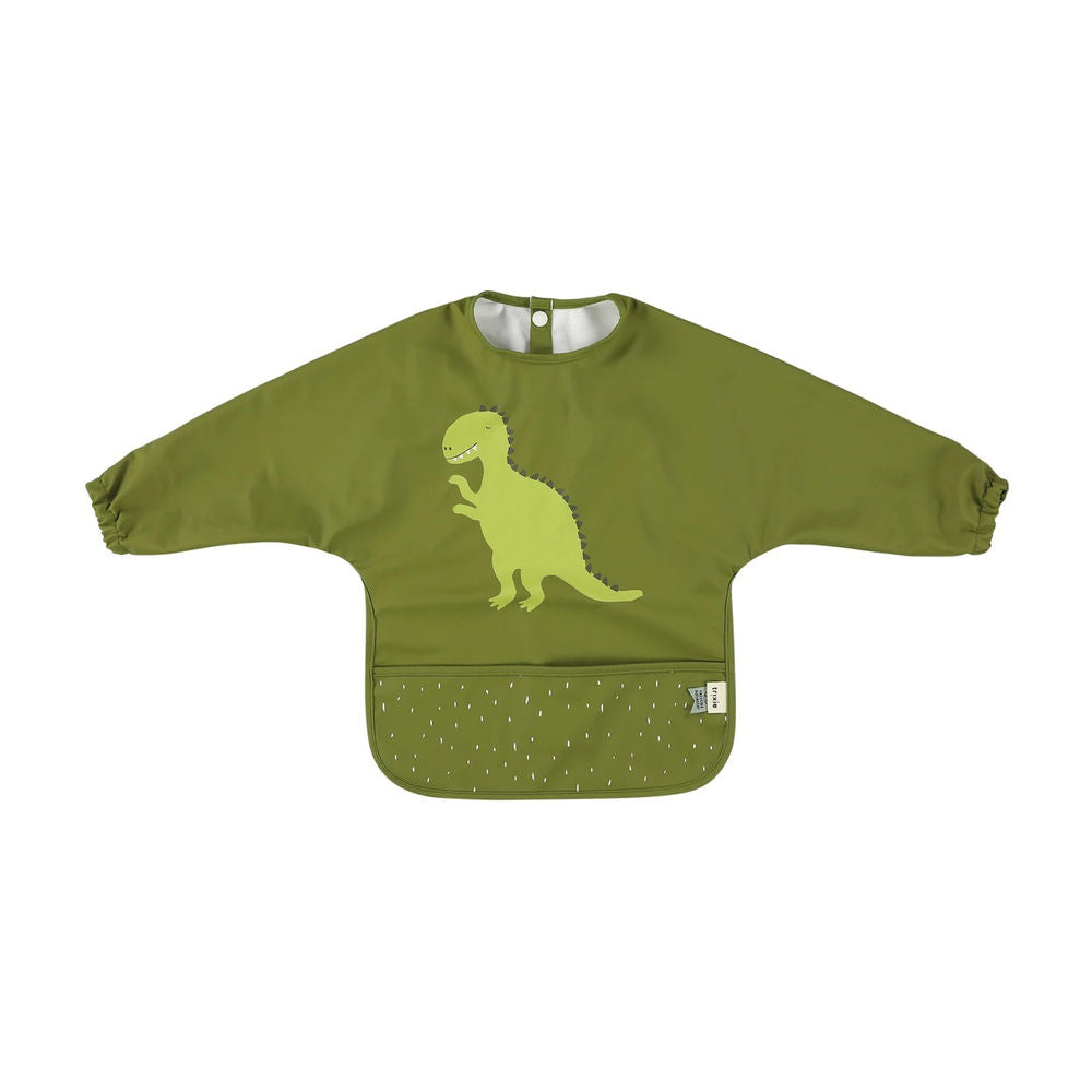 Dieses heitere Lätzchen mit praktischen langen Ärmeln hält die Kleidung des Babys sauber beim Genuss eines leckeren Getränks oder einem Happen zu essen. In der praktischen Tasche wird fast alles aufgefangen, was den Mund verfehlt hat, sodass es weniger wegzuwischen gibt. Der Stoff ist aus 100% recycelter Polyester und wasserdicht! Er lässt sich leicht abwischen und erspart einem eine Menge Zeit beim Waschen oder Reinigen.