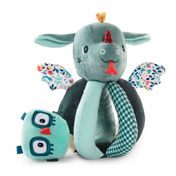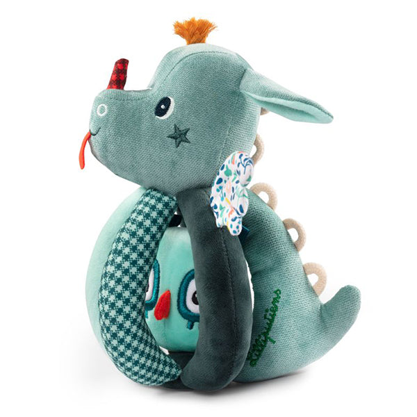 An original rattle, easy for little hands to grasp. A little friend is hidden between the handles. 100% polyester. Machine washable at 30°C - gentle cycle.