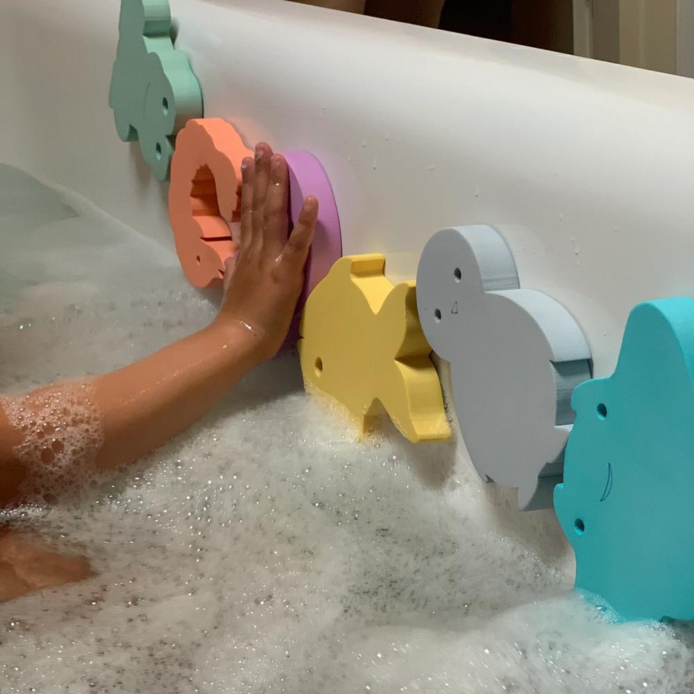 The animals stick to the bathtub or shower wall, the children can use a raft