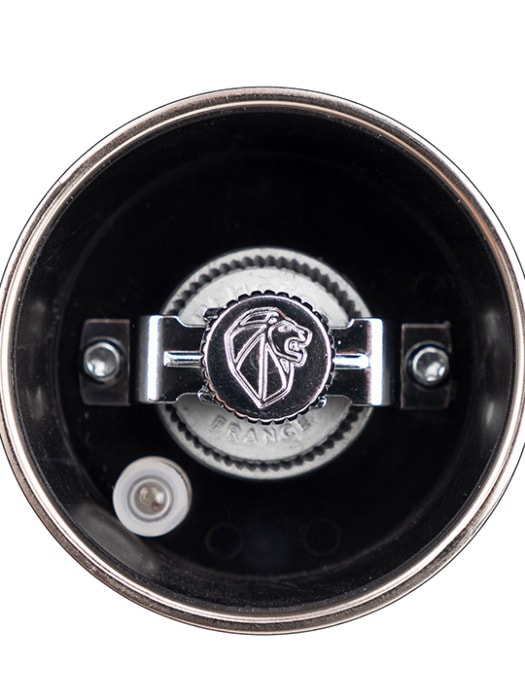 This elegant pepper mill with a distinctly modern design and a completely round rotary knob looks playful and nostalgic at the same time. It stands out because it combines plastic and metal into a harmonious whole. Electric pepper mill with lighting and adjustable grinding system.