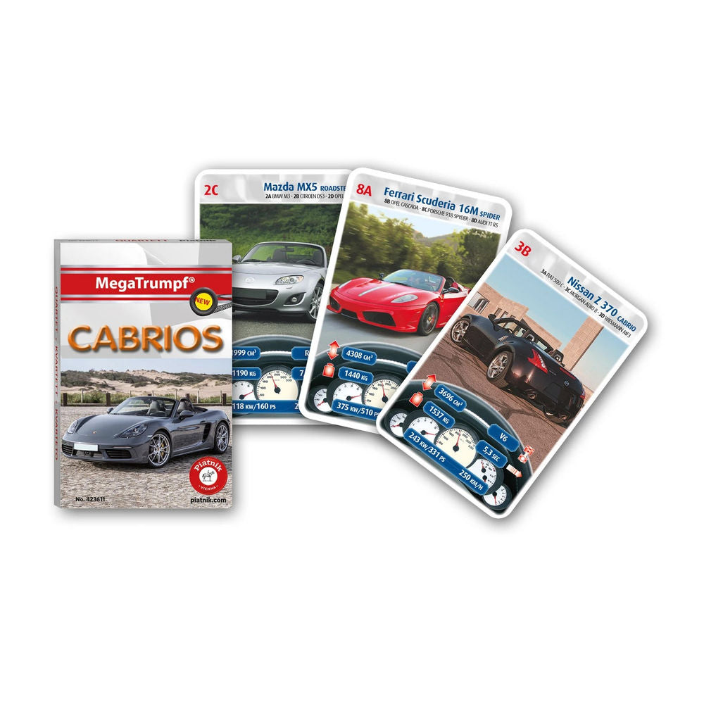 MegaTrumpf - a card game that will delight anyone interested in technology due to its many details about the different vehicles. And this is how it works: All the cards are shuffled and dealt to the players. Everyone holds their pack of cards so that only they can see the top card. One player starts and names a technical detail of their choice, e.g. engine power. All players then take turns to name the corresponding values of their top card. The player with the highest value now receives the cards of his fellow players and puts them under his stack. As soon as a player has no more cards, the game ends. The player who has collected the most cards wins.