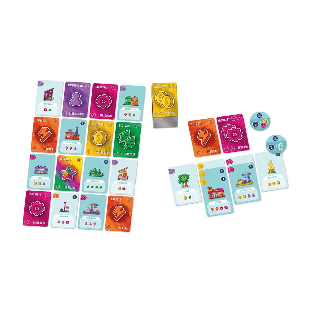 Créez des bâtiments grâce aux ressources dont vous disposez et utilisez leurs effets afin de marquer un maximum de points en fin de partie!