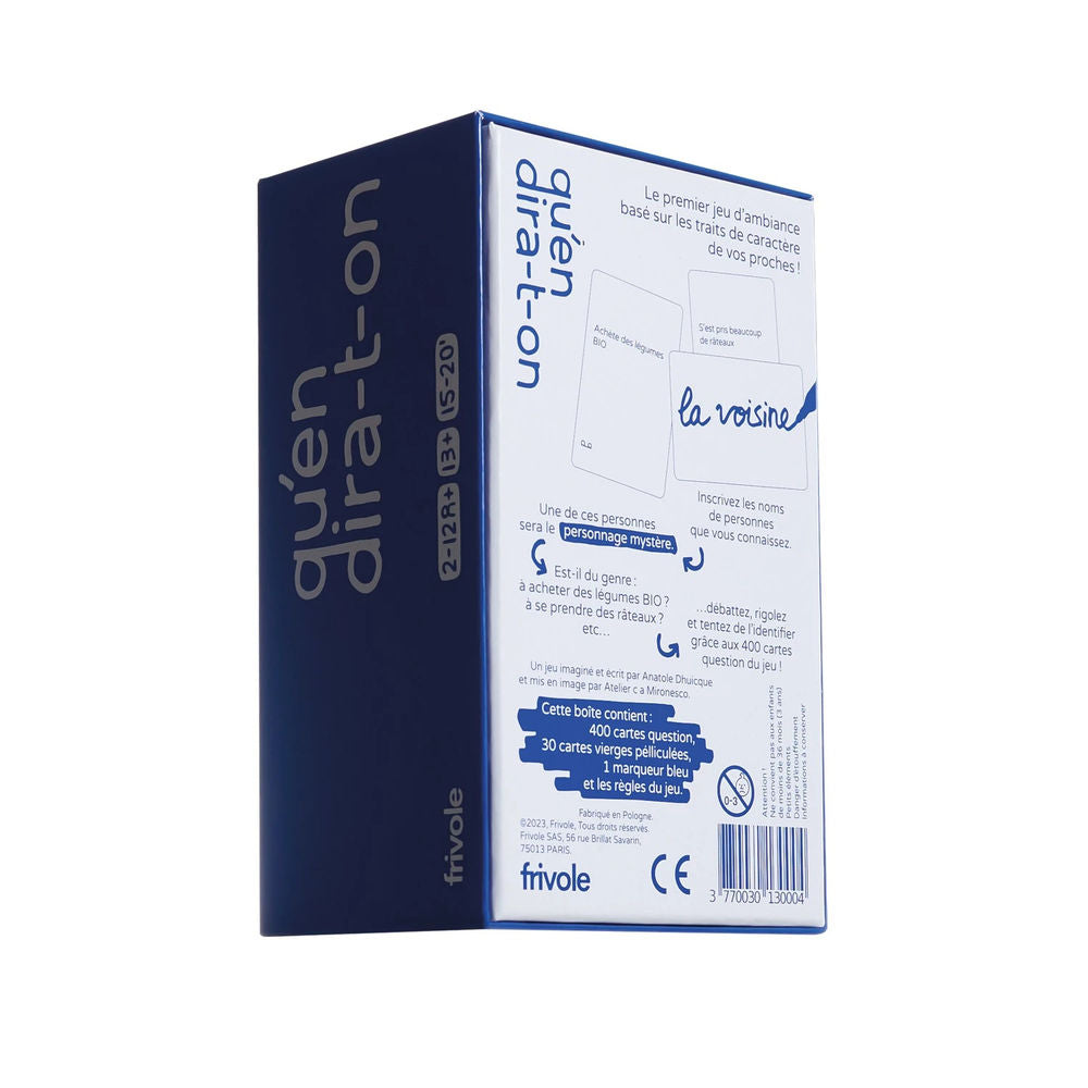 Qu’en dira-t-on est un jeu de déduction coopératif où les joueurs vont devoir débattre afin d'identifier un personnage mystère parmi leurs proches ou des personnes connues de tous.
