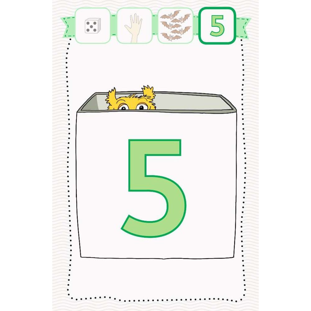 The card game "First Numbers" helps you get to know the numbers from 1-10. Following the well-known quartet principle, this game always collects and lays down four words that show the same number. Funny action cards bring movement and surprise into the game. The winner is the first person to lay down all of their cards correctly.
