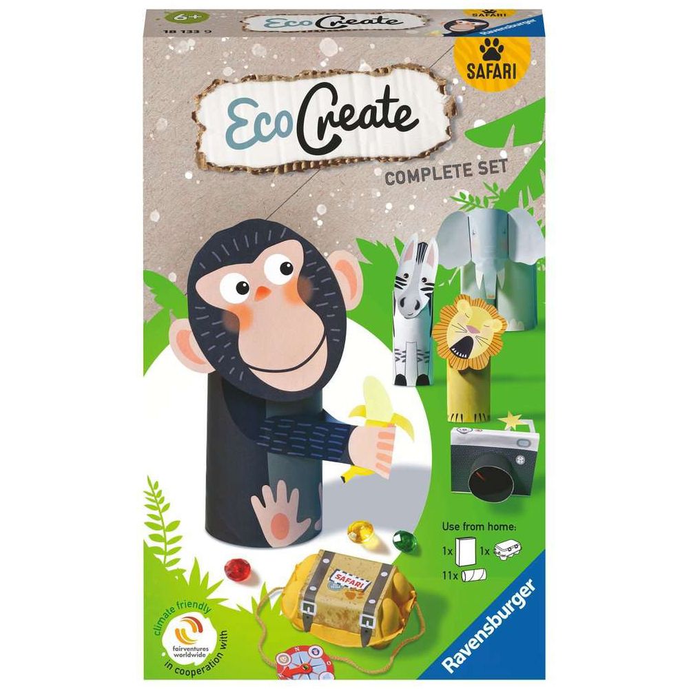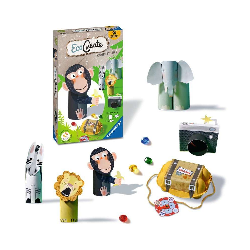 The EcoCreate "Safari" set from Ravensburger contains everything you need to create great and unique DIY projects from materials you no longer need (e.g. empty drinks cartons or toilet paper rolls) at home. The upcycled objects you create have a secondary use and are part of a game or accessory. The simple instructions take you through each project step by step and guarantee a beautiful end result.