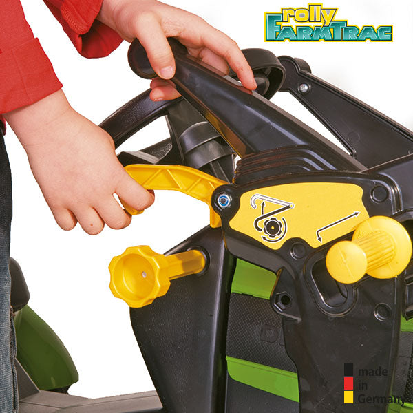 The RollyToys Farmtrac Premium pedal tractors are built with great attention to detail and are very robust. Ideal for the small professional farmer and tractor fan who also has high demands on the various agricultural machines. With the very stable front wheel suspension and the axle steering, precise steering of the children's tractor is possible in every situation. The hood can be opened easily and offers storage space. All RollyToys Farmtrac Premium pedal tractors can be retrofitted with many functional accessories.