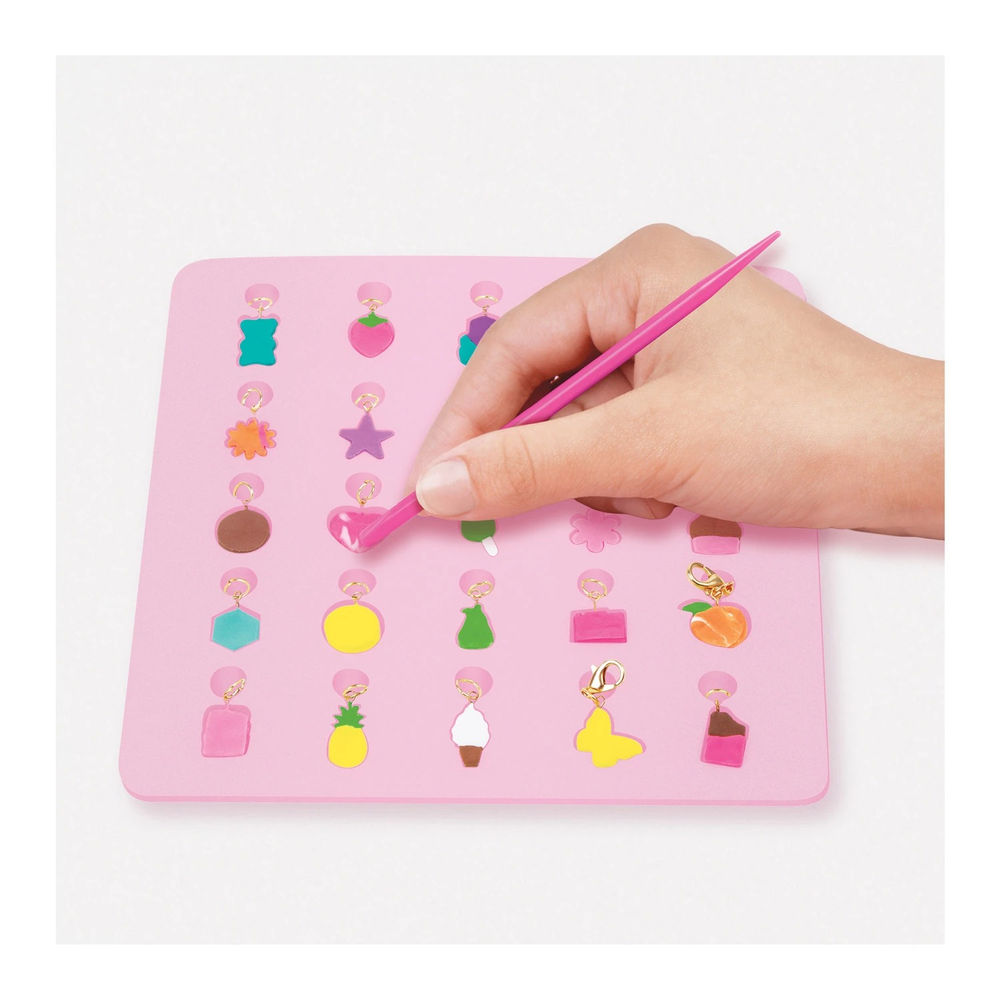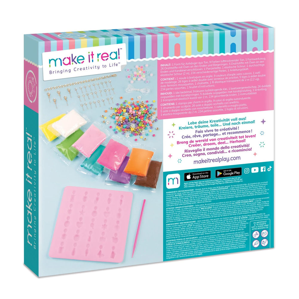 Set zum Herstellen von Schmuck aus Modellierknete. Inhalt: 1 Form für Anhänger aus Modellierknete, 9 Farben lufttrocknende Modellierknete, 1 Formwerkzeug, 26 Drahtstifte mit Ösen an den Enden und Biegeringen, 5 Drahtstifte mit Ösen an den Enden und Karabinerverschlüssen, 1 Panzerkette, 1 elastische Schnur, 1 durchsichtige elastische Schnur (2 m), 234 verschiedenartige Perlen, 1 Anleitung.