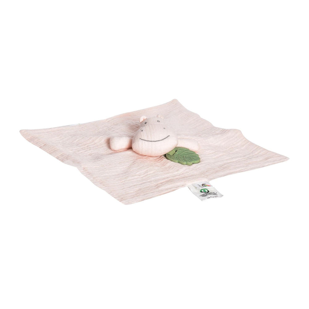 Das weiche Schmusetuch besteht aus 100% Organic Baumwoll-Crinkle-Musselin und 100% Organic Baumwoll-Single Jersey Stoff. Die Faserfüllung aus recycelten PET-Flaschen. Es bietet eine ideale Zahnungshilfe und hilft bei der Entwicklung der Sensorik.