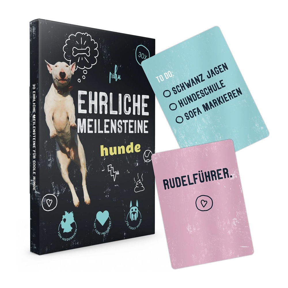 30 individual milestone cards for funny photos with your four-legged friend. With space for memories on the back. Recommended by alpha animals.