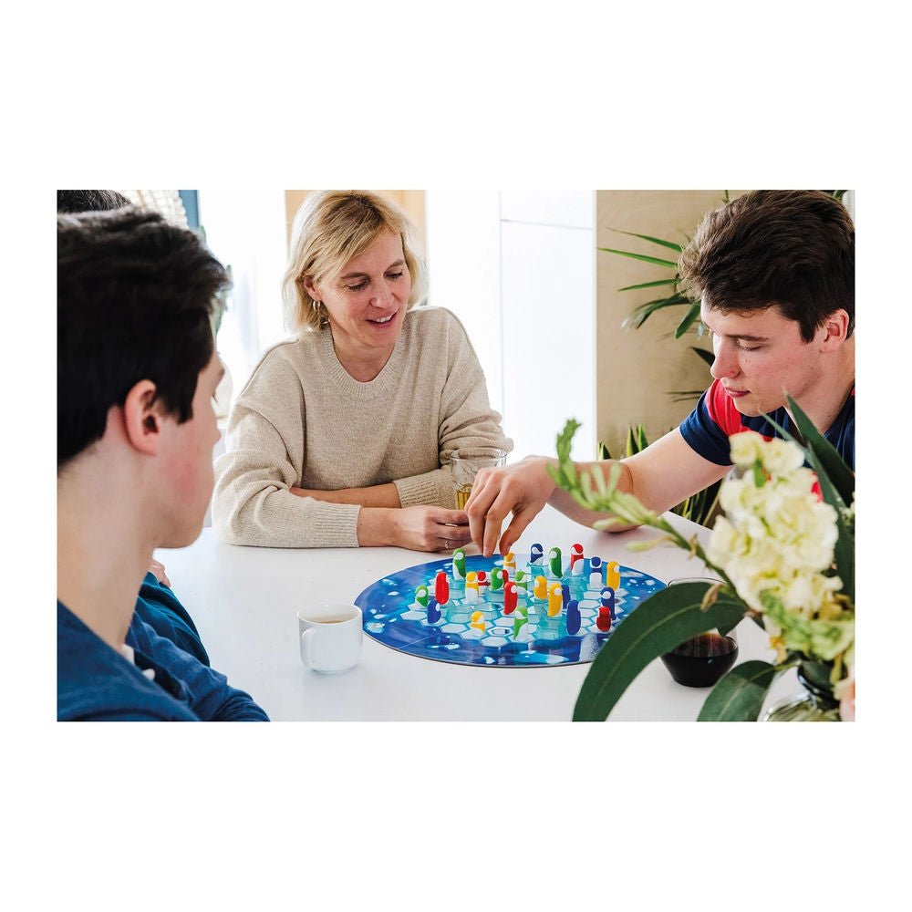 The penguins are scattered across the ice and it's starting to get cold! Bring your penguins together... and stop the other players from doing the same! The first player to bring their penguin family together wins the game.