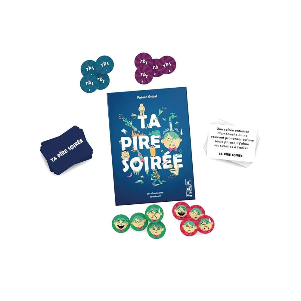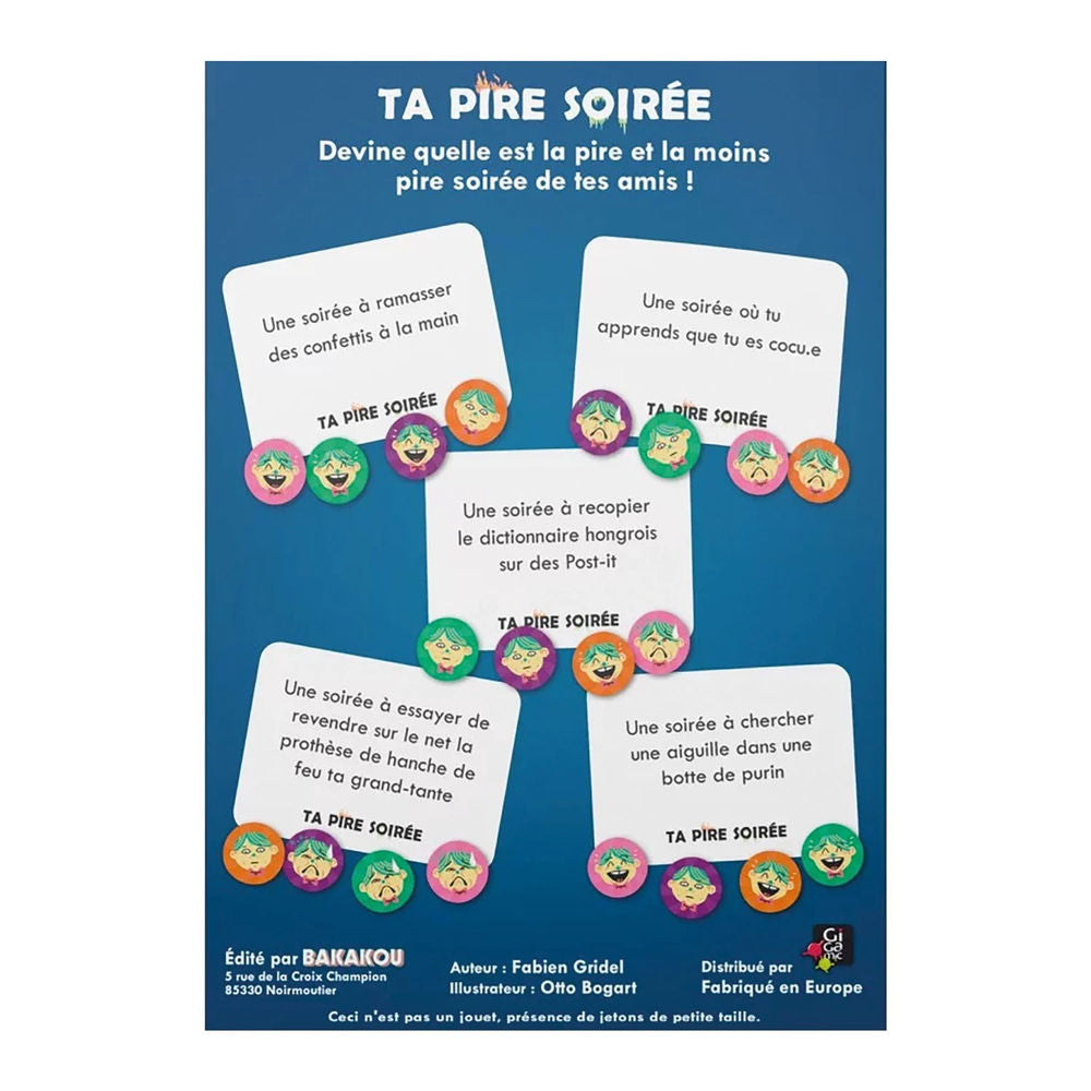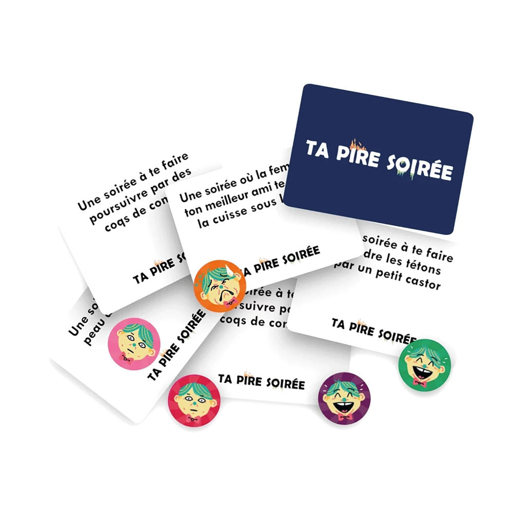 Ta Pire Soirée, un jeu d’ambiance collaboratif où il faut deviner quelle est la pire et la moins pire soirée de tes amis!