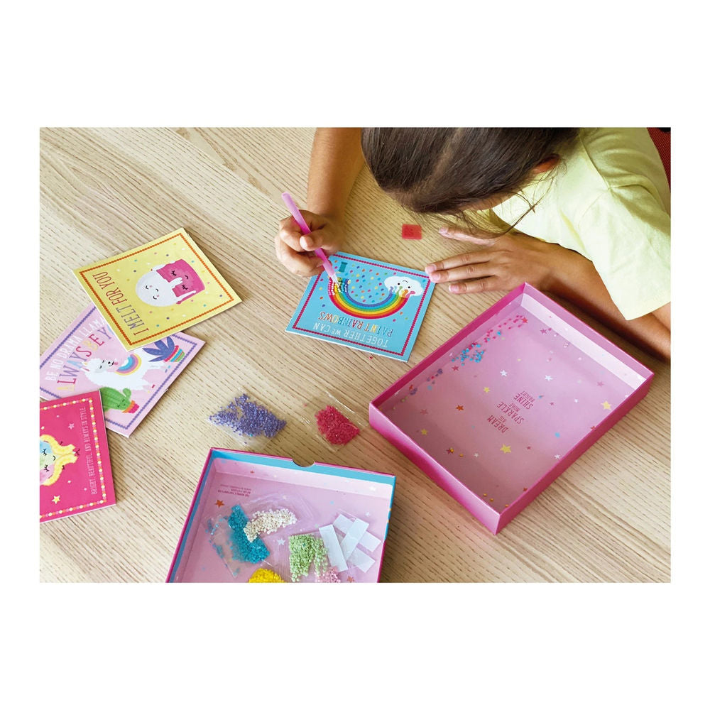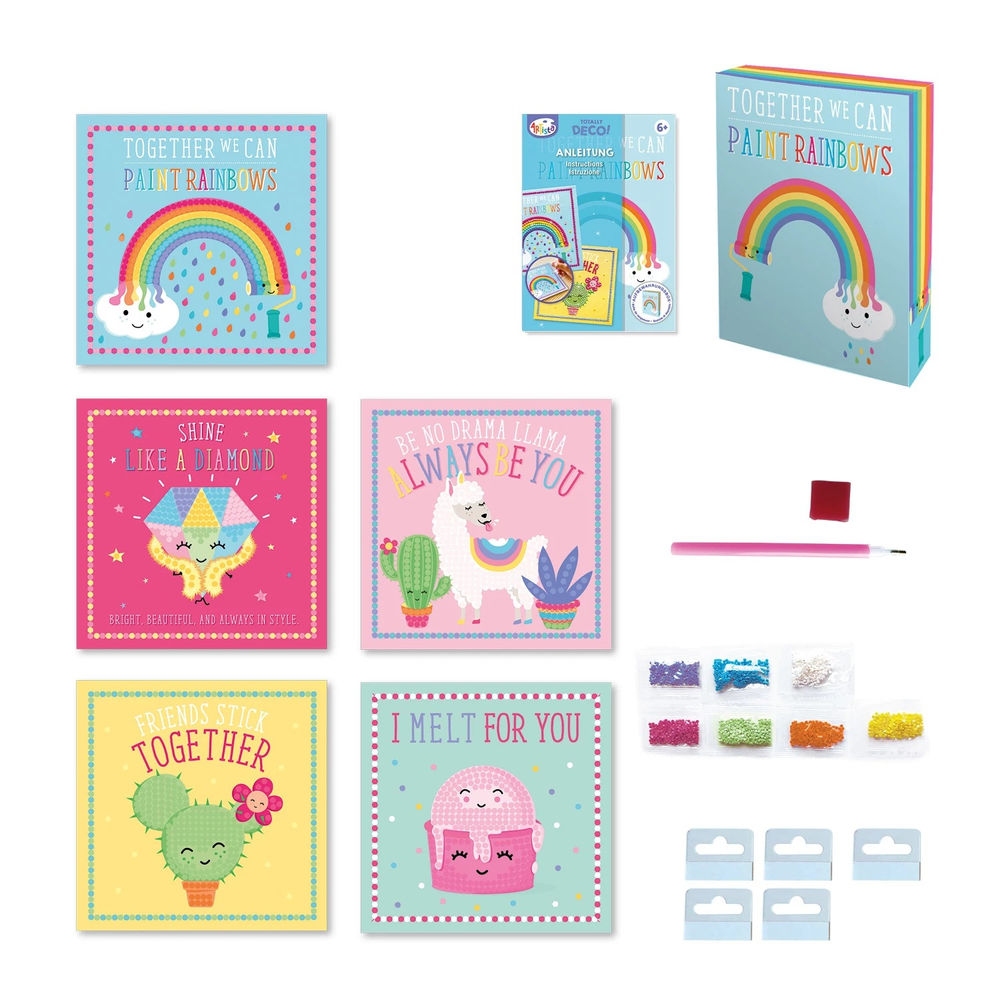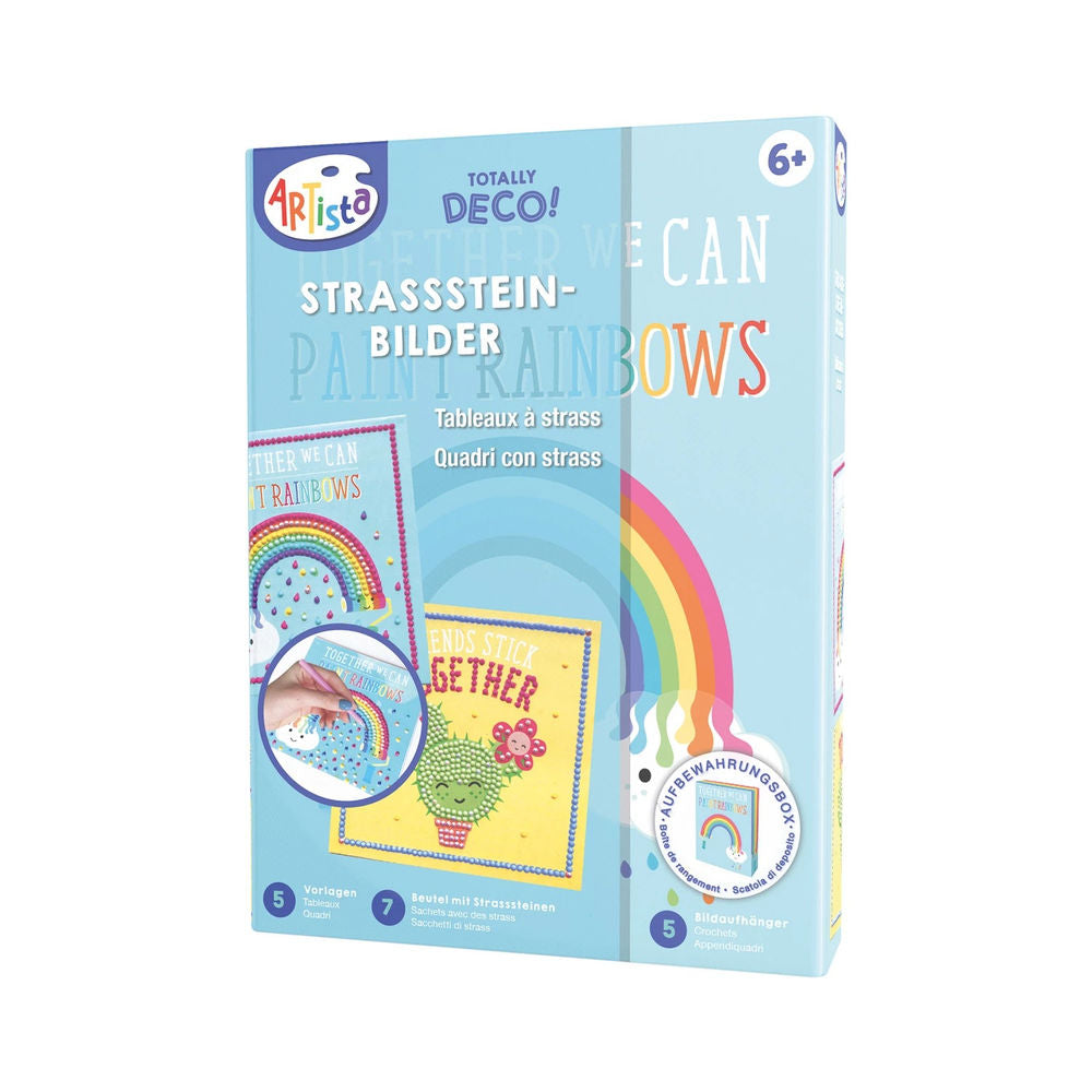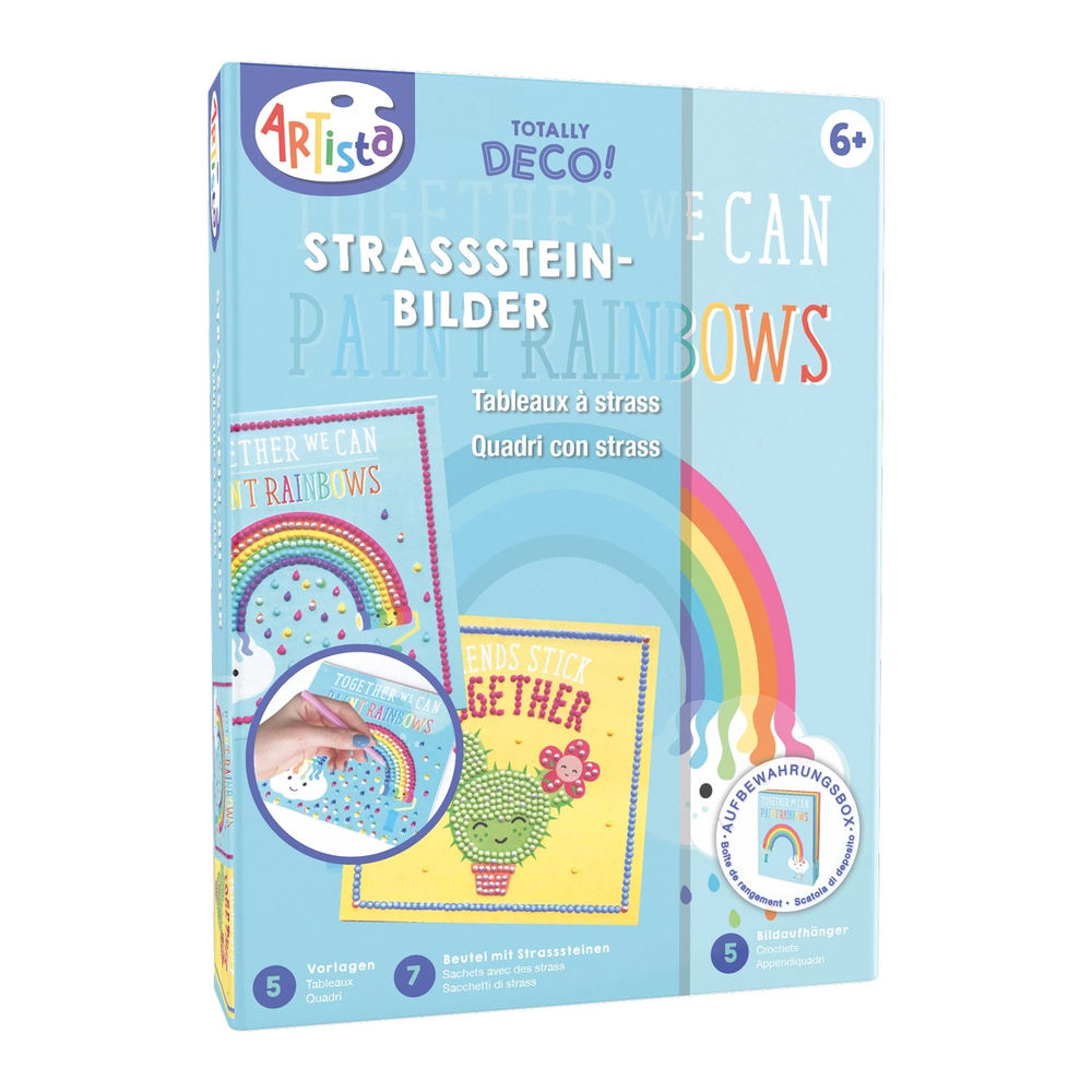 Œuvre d'art en strass scintillante pour l'artisanat et la suspension. Dans une jolie boîte de rangement. Contenu : 5 gabarits, 7 sachets de strass de couleurs différentes, 5 accroches tableaux, 1 plaque adhésive en cire, 1 stylo pour fixer les strass, 1 mode d'emploi avec illustrations.