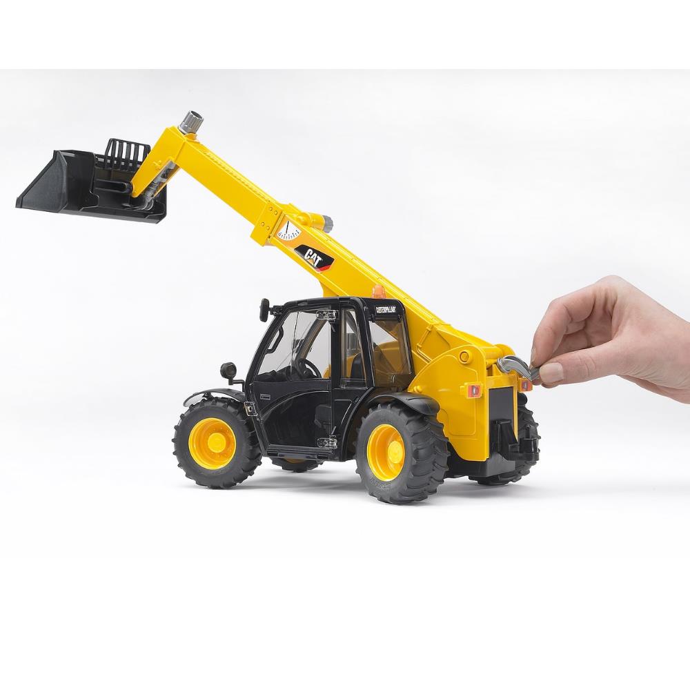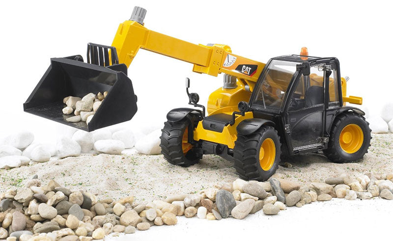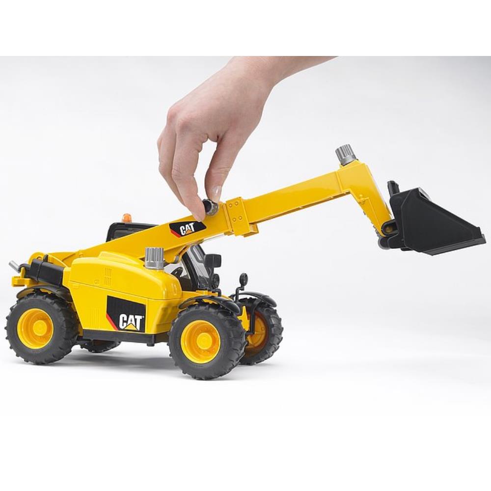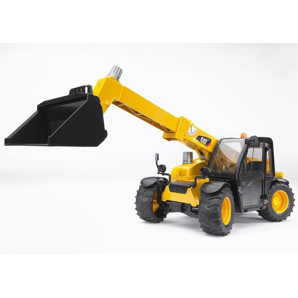 Le chariot télescopique CATERPILLAR est un véritable polyvalent. Qu'il s'agisse de pelleter de grandes quantités de terre ou de charger des marchandises sensibles sur des palettes, le chariot télescopique CAT est toujours un partenaire fiable et efficace. Ses petites dimensions combinées à son bras télescopique largement extensible en font souvent le premier choix dans une grande variété d'applications. Le modèle CAT est contrôlé avec précision via quatre poignées rotatives aux reflets argentés. En plus des fonctions telles que le réglage de la hauteur du bras, l'extension du bras et le réglage de l'angle du porte-outil, le chariot télescopique dispose de quatre roues directrices qui fonctionnent bien. Cette direction du chariot télescopique CAT fait de la manipulation du véhicule un jeu d'enfant, aussi bien sur le modèle d'origine que sur le modèle BRUDER.