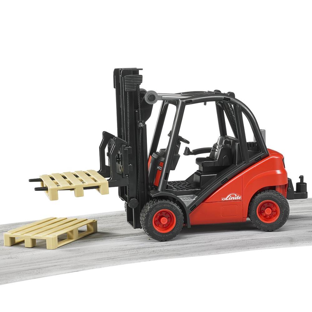 Chariot élévateur Bruder Linde H30D avec attelage de remorque et 2 palettes, série professionnelle