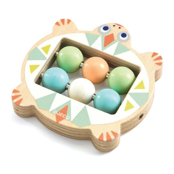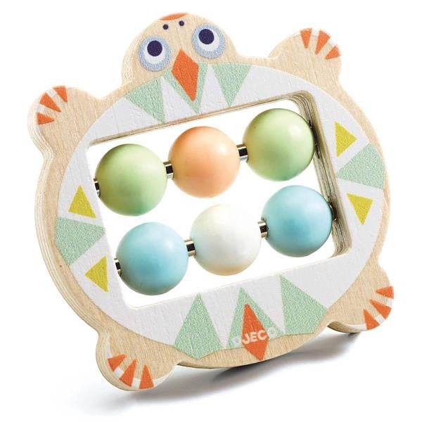 Le hochet en bois BABYBOULI aux couleurs pastel de Djeco est un beau jouet pour les petits. Les boules qui roulent comme le ventre de la tortue éveillent la curiosité de l'enfant. De plus, la forme arrondie peut être facilement tenue et secouée par les mains des enfants.