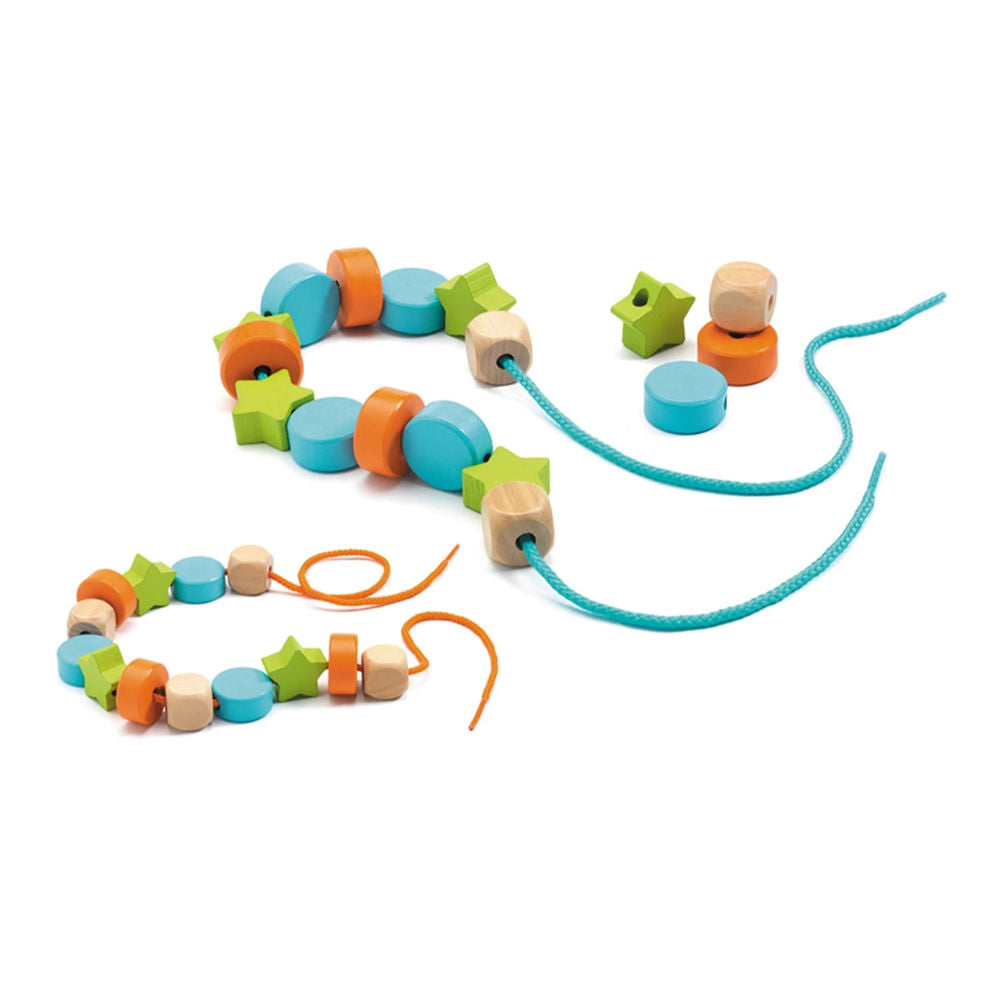 Les enfants peuvent faire preuve de créativité avec les jeux de filetage de Djeco. Chaque ensemble se compose de diverses perles en bois et de deux cordons. Les perles sont conçues avec de jolis motifs. Avec un peu d'adresse, les enfants à partir de 2 ans peuvent enfiler les perles sur les rubans. Cela signifie que le jeu d'enfilage Djeco favorise la concentration et la motricité de l'enfant.