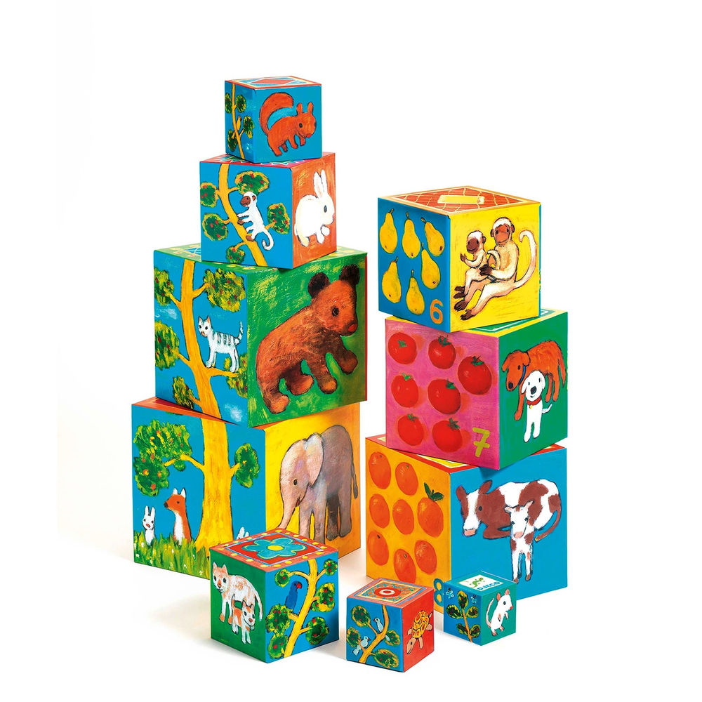 Une tour à empiler joyeuse et colorée avec différents gros cubes de différentes tailles. Les cubes peuvent être empilés les uns sur les autres.