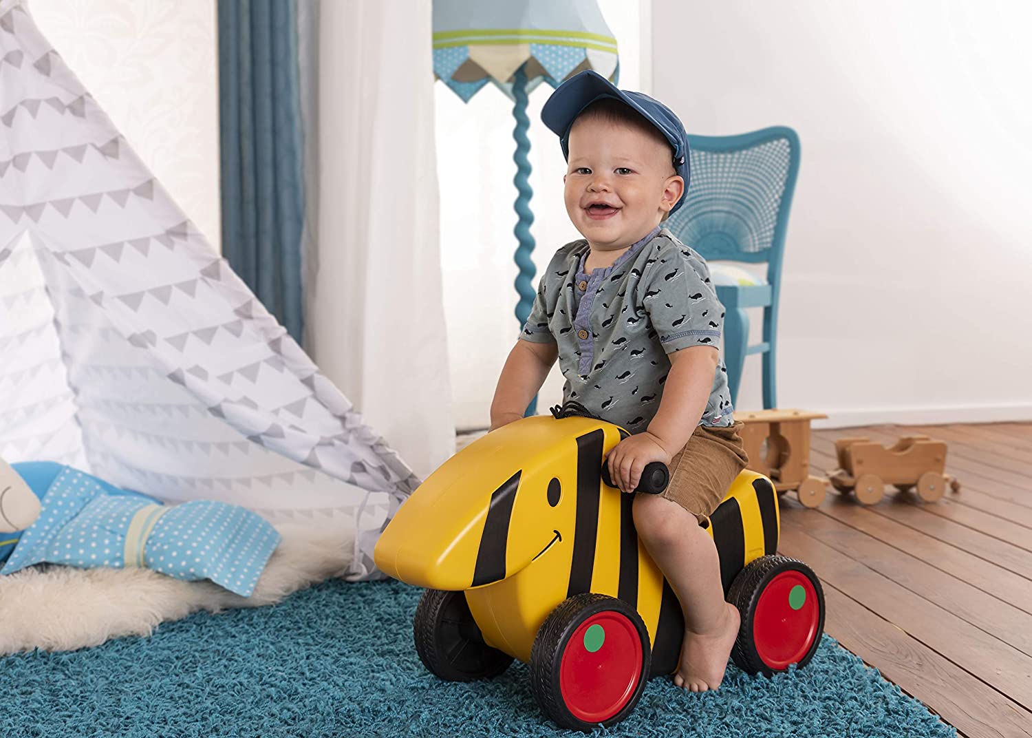 Notre véhicule porteur pour les tout-petits : les fans de Janosch dès l'âge d'un an font leurs premiers essais de conduite avec le joyeux canard tigre. Les pneus murmurés ne mettent pas seulement les enfants de bonne humeur. Les parents et les voisins sont également ravis de ce véhicule silencieux. Grâce aux poignées souples et à l'évidement du siège, dans lequel les plus petits peuvent trouver un maintien sûr, ce porteur de haute qualité peut être utilisé de manière intensive et sans soucis. La voiture autoportée Tiger Duck peut être conduite dans le salon et à l'extérieur.