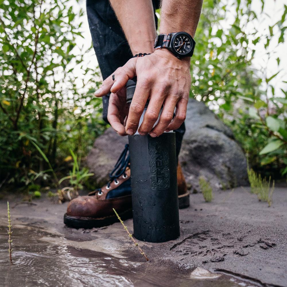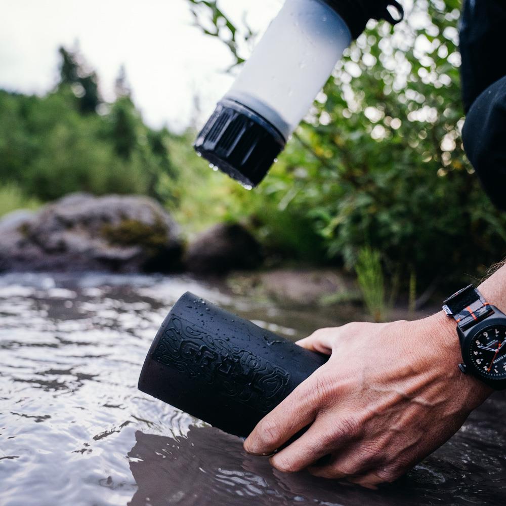 L'eau peut être filtrée très rapidement et facilement, créant ainsi de l'eau potable en quelques secondes seulement. Aucun autre filtre à eau portable ne peut égaler l'efficacité des purificateurs Grayl® Geopress. 710 ml d'eau potable propre sont produits en 14 secondes. Partout dans le monde!