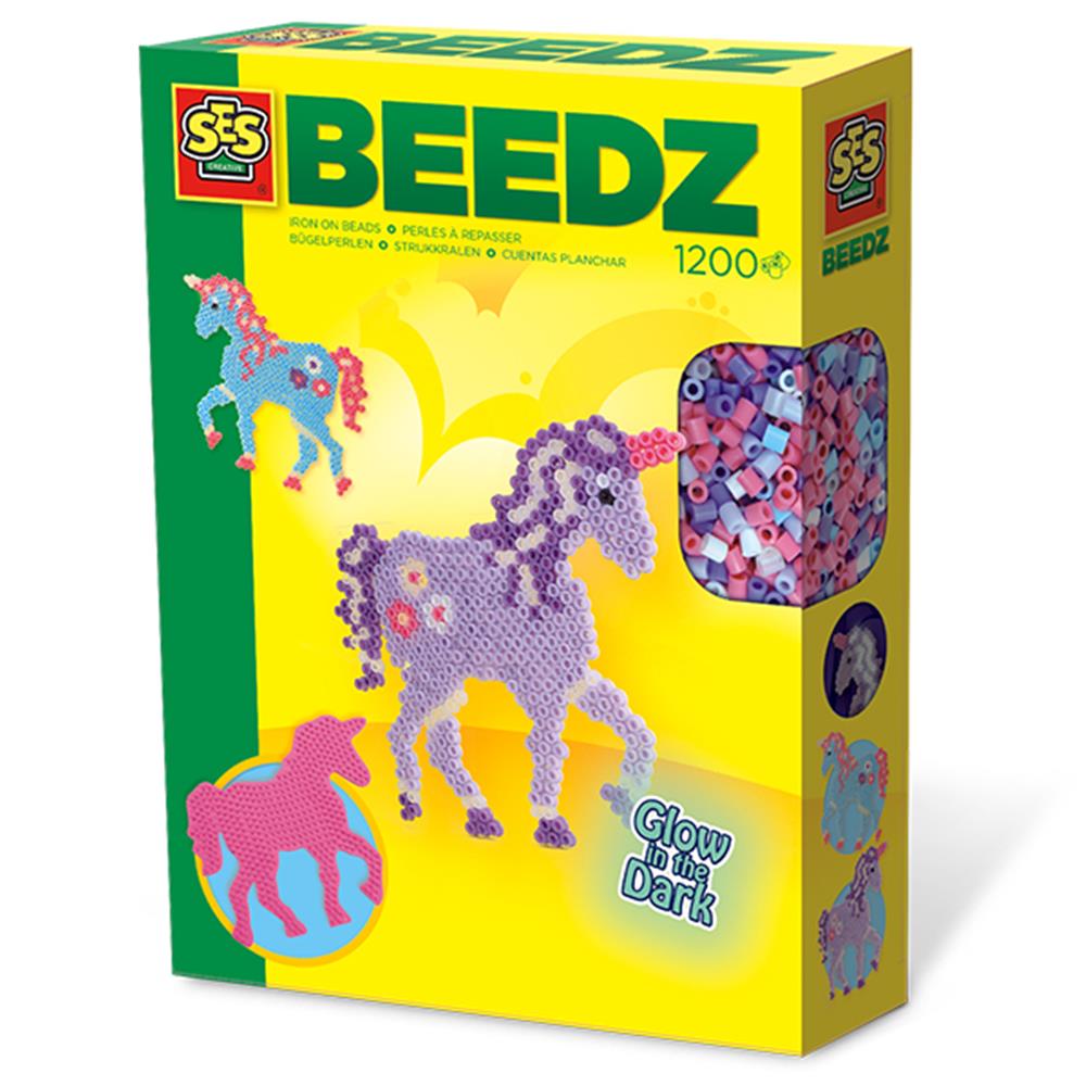 Avec cet ensemble de SES, vous pouvez créer une magnifique licorne qui brille dans le noir. Il n'y a pas de limites à l'imagination et la motricité de l'enfant est encouragée de manière ludique. Les perles thermocollantes sont sans PVC et sont fabriquées en Hollande. Contenu : 1 200 perles à repasser (dont des perles qui brillent dans le noir), panneau perforé licorne, papier à repasser.