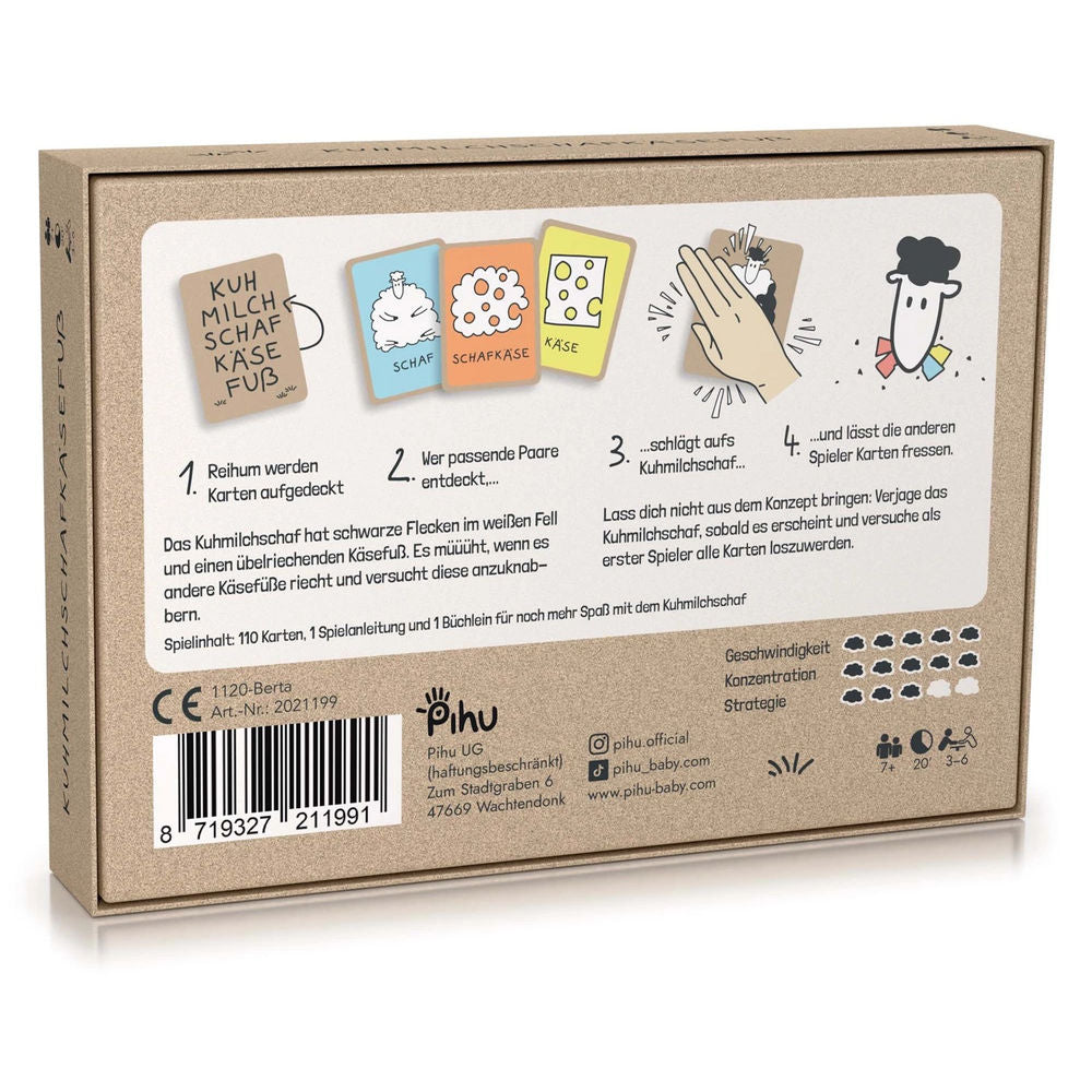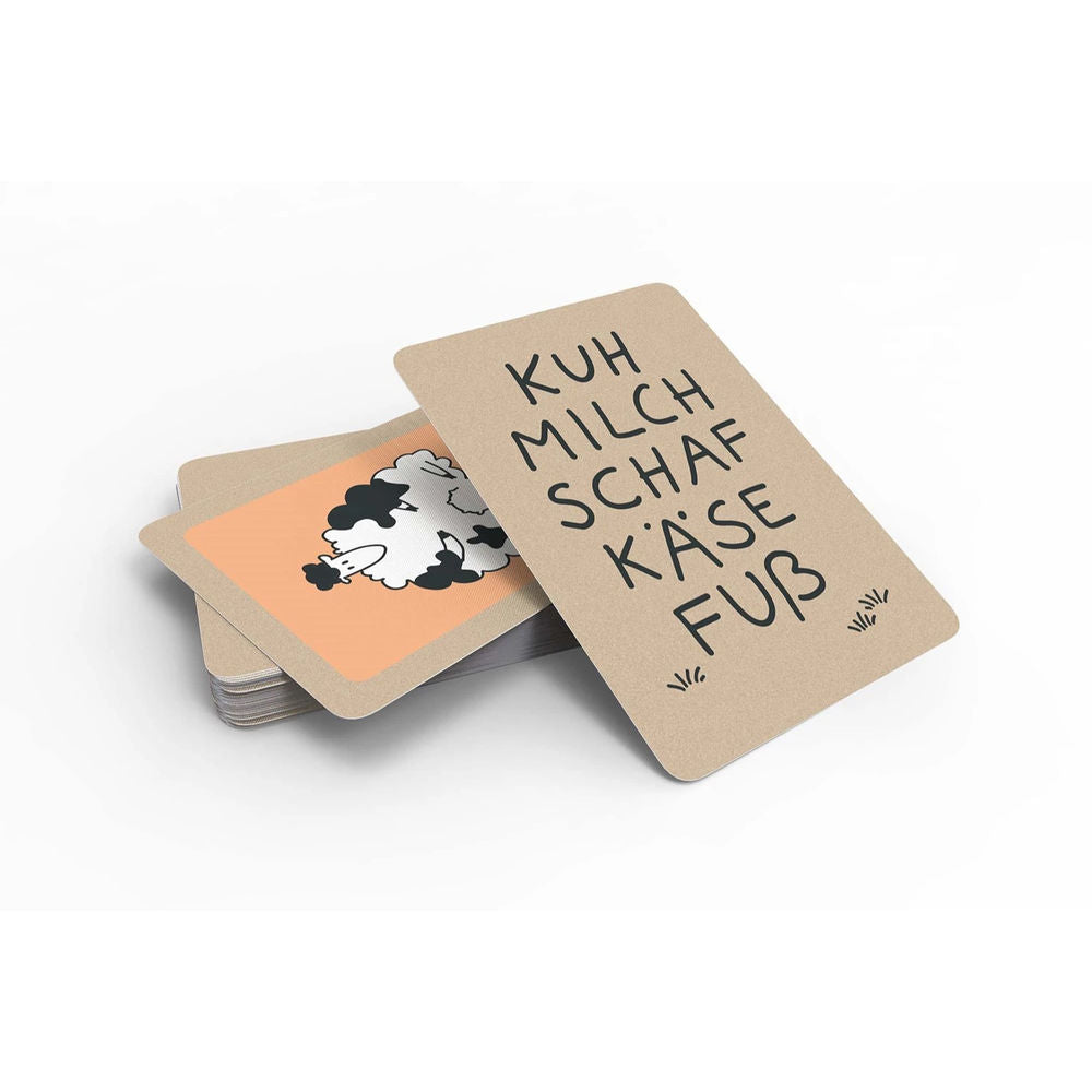 La brebis au lait de vache a des taches noires sur sa fourrure blanche et un pied de fromage nauséabond. C'est fatigant quand il sent d'autres pieds de fromage et essaie de les grignoter. Ne vous laissez pas surprendre : chassez la brebis au lait de vache dès son apparition et tentez d'être le premier joueur à vous débarrasser de toutes les cartes.