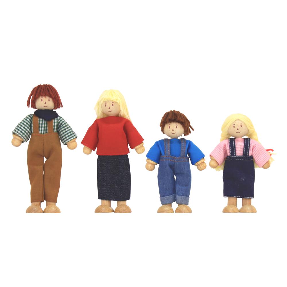 Ces poupées familiales agricoles flexibles en bois, avec des vêtements en tissu, enrichissent le jeu à la ferme ou avec la maison de poupée. Avec le père, la mère, le fils et la fille, ces membres de la famille sont idéaux pour les jeux de rôle.