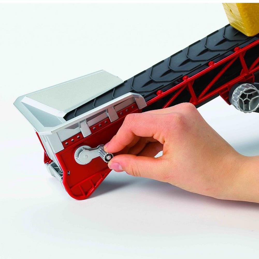 Les bandes transporteuses ont particulièrement facilité le transport de matériaux en vrac tels que le sable, le gravier, etc. Dans le secteur agricole, elles sont également souvent utilisées pour les bottes de paille et les gaines de bois, c'est-à-dire des objets solides. Afin de faciliter le travail difficile de nos petits constructeurs et agriculteurs, BRUDER lance sur le marché une bande transporteuse moderne.