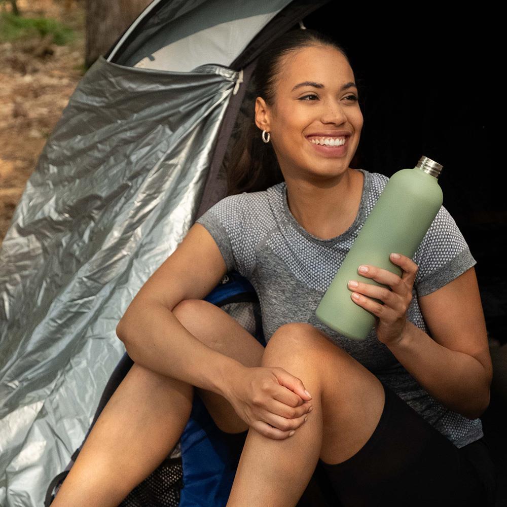 Trinkflasche Edelstahl Wood Edition, 1000 ml, Olive Green