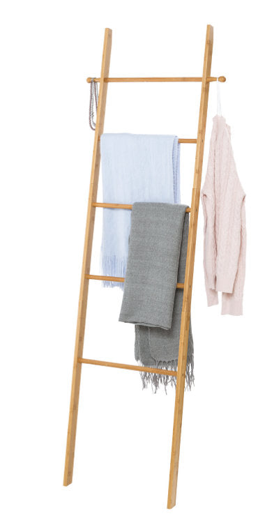Échelle pratique en bambou pour serviettes ou vêtements. Peut être positionné n'importe où. Avec 5 porte-serviettes et 2 crochets supplémentaires. Matériel: Bambou. 43x33x170cm