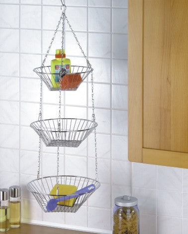 Peu encombrant, avec 3 paniers de rangement, chromés