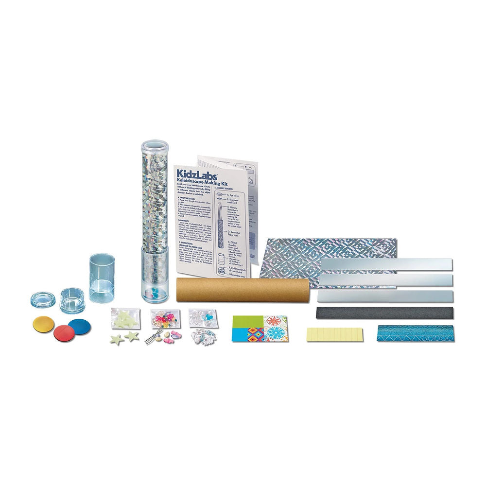 Bastle dein eigenes Kaleidoskop! Erschaffe Millionen genialer Muster, indem du die Objektkammer mit unterschiedlichen Schmucksteinchen füllst. Stelle ein 25 cm langes Kaleidoskop her, das die Farbe wechselt, ein geheimnisvoll leuchtendes Kaleidoskop, ein Kaleidoskop mit geometrischen Mustern oder ein Schneeflockenkaleidoskop. Alles in einem Bastelset!