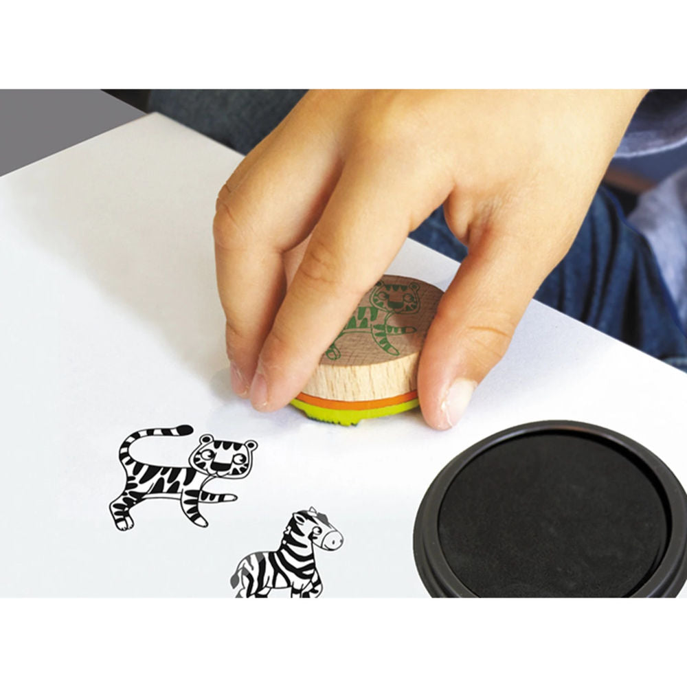 Umweltfreundliche Stempelsets für Kinder ab 3 Jahren. Die FSC zertifizierten Holzstempel in einer hochwertigen Kartonbox. Inhalt: 8 Holzstempel ø 4 cm und ein Stempelkissen mit abwaschbarer Tinte.
